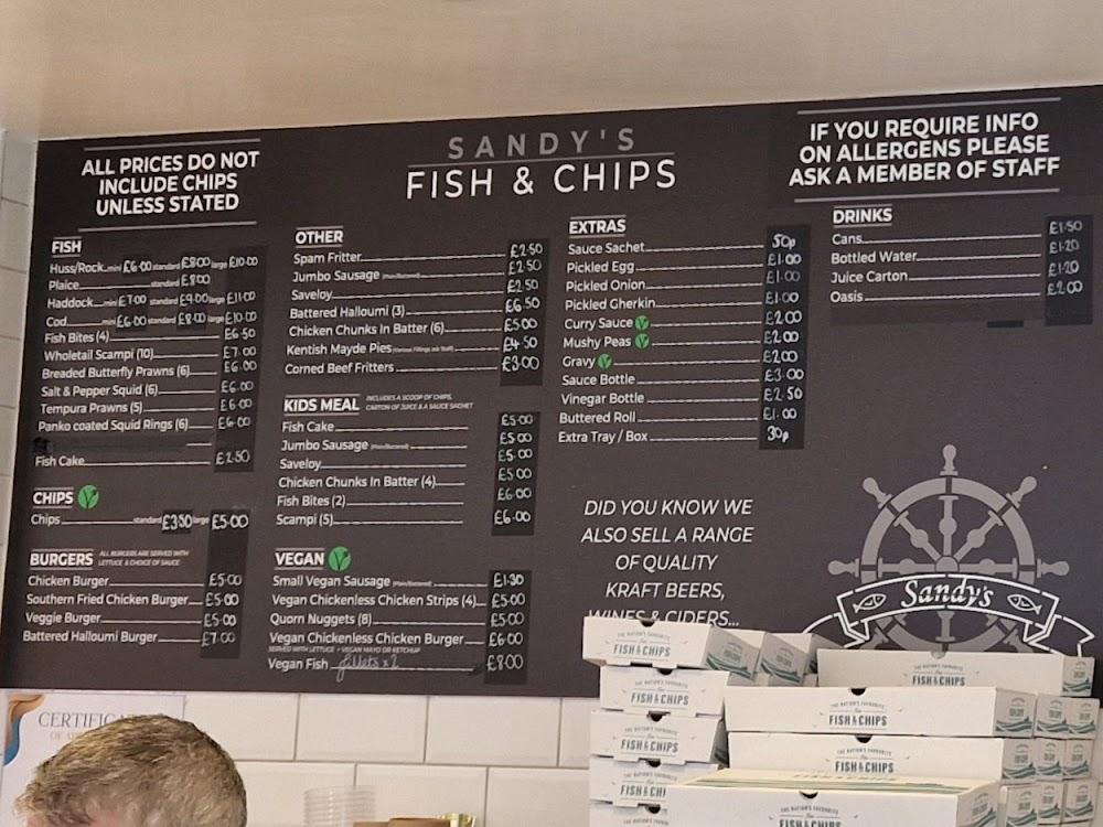 Located at 2/3 Back St, Folkestone CT19 6NN, Sandy's stands out as a cornerstone of the local food scene. This fish and chips takeaway thrives on its picturesque environment, allowing diners to enjoy their meals while soaking in the charm of Folkestone Harbour. The venue boasts wheelchair-accessible seating, making it an inclusive dining choice for everyone. Operated with a sense of community flair, the shop encourages patrons to order through Folkestone Eats for pickup, keeping personal interactions lively. The staff’s friendliness enhances the dining experience, making the wait worthwhile. Given its popularity, especially on weekends, preparing for slight delays during peak times ensures that you enjoy the freshest food available. Parking is convenient with free on-street options and a nearby paid parking lot, which eases the visit. Sporting a casual atmosphere, the establishment welcomes everyone—from families with small children to individuals looking for a satisfying meal by the seaside.